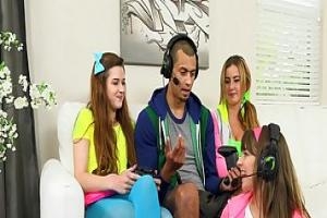 Две сладкие девочки развлекаются втроем с красивым парнем, они просто встречались