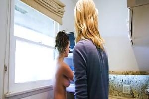 Страстные дамы дрочит друг друга's в киска на кухне, в середине дня